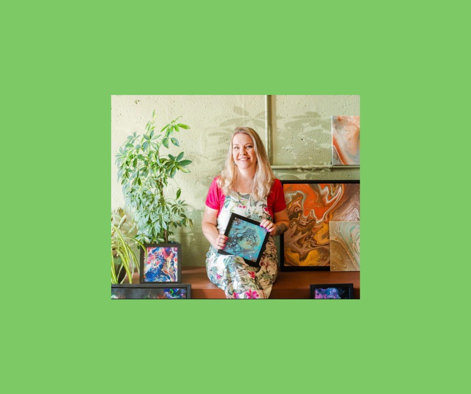 Mindfulness is a great tool for anyone suffering from anxiety or depression or even chronic pain. Artist, Gill, is personally affected by chronic pain and anxiety. Having found therapeutic benefit in using fluid art for mindfulness to manage her symptoms, Gill strives to share this idea and to help provide other people with a new tool to help manage their own wellness in a fun way.